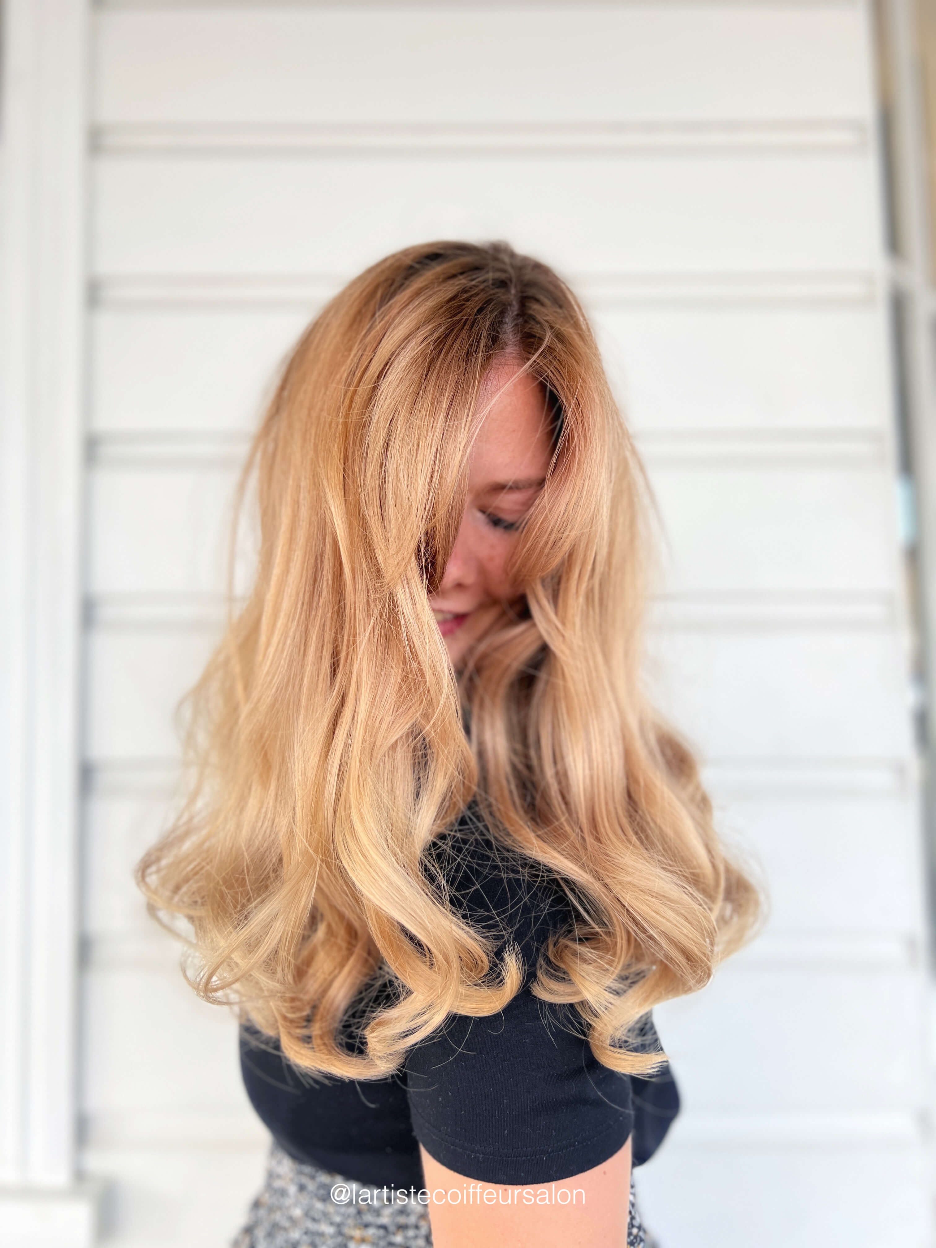 The French Balayage is the number one blonding service in Paris France and for good reason as it's a perfect combination of beauty and sophistication. French women are known for embracing their natural hair and celebrating its beauty, rather than conforming to artificial beauty standards. When it comes to hair colouring, they tend to prefer a freestyle approach, rather than a full head of highlights distributed uniformly through the hair. French women opt for a darker shadow at the roots with a lighter colour towards the ends. This achieves a more dimensional, diffused, and non-defined look that blends and melts towards the edges.