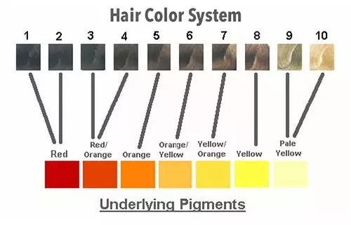 When hair is lightened through bleaching or exposure to UV rays from the sun, the first thing to happen is the black and brown pigments are dissolved leaving the red, orange and yellow pigments in the hair. If we continue the bleaching process the red then the orange pigments are dissolved leaving the yellow pigments. Once the yellow pigments have dissolved no melanin is left in the hair and it becomes susceptible to breakage. This is what hairdressers call over-processed hair.